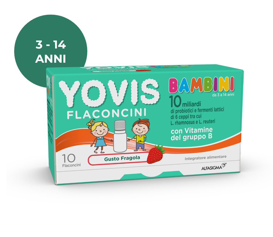 Yovis Bambini ha una formulazione esclusiva, completa e sicura, studiata per intervenire a supporto dell’intestino nella delicata fase della crescita, e per accompagnare il tuo bambino dai 3 ai 14 anni, rispettando la sua unicità.